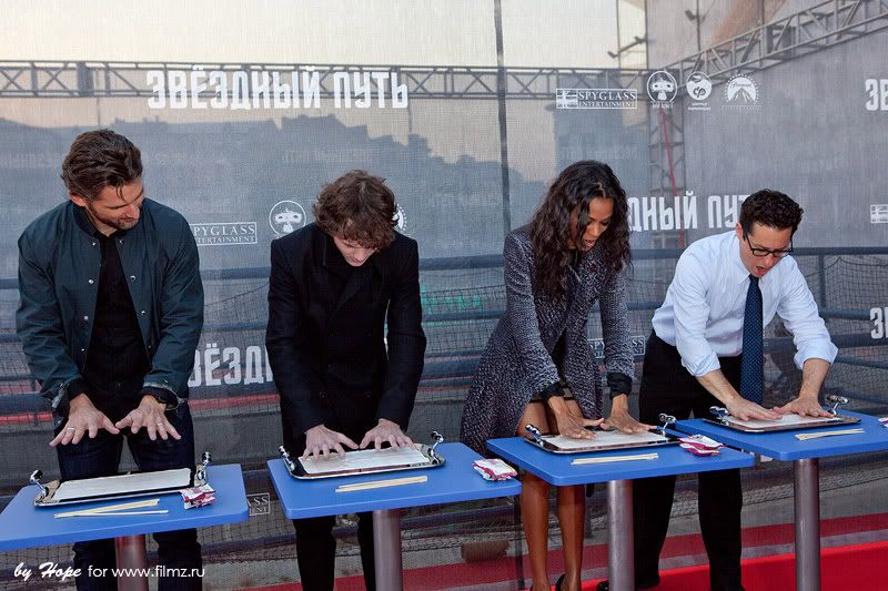 Нижнее: красная дорожка... "так, что мы делаем-то? Руки пачкаем?", режиссер в своем репертуаре - командует: "Все вместе... три-четыре". Забавно. что и на фотосессии они быстро сговорились, Джей Джей предложил, чтобы всем в кадр попасть глазами, синхронно обвести весь зал. И они все четверо, синхронно, поворачивали головы по кругу. Лапочки, сразу видно - режиссер на площадке!