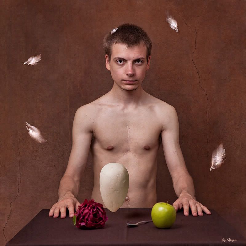 честно говоря, смысл фотографии мне не понятен почему перья? почему они так выбиваются по освещению, что автор хочет этим подчеркнуть? и что за странная продолговатая белая хрень посередине?))
