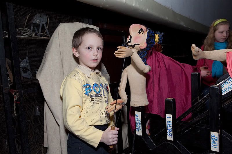В антракте мы пошли за кулисы, посмотреть на кукол вблизи.