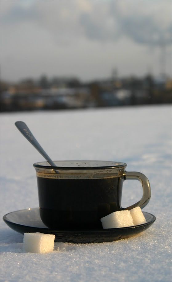 Данная фотография в общем-то под определение сюрреализма подходит, в обыденной жизни завод, снег, лед и чашка горячего кофе - вполне несовместимы. Вы же не распиваете чай на льду каждый день?