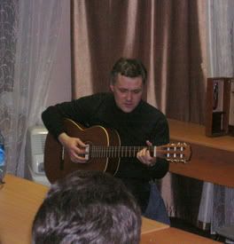 | Василий Головачем читает лекцию "Проблемы метасмысла и метатекста и изменений аксиоматического ядра постулированной трансценденции русской фантастической литературы". | Михаил Тырин с гитарой | Вручение основных призов конвента. На сцене Щербак-Жуков и Александр Ройфе. | Юлий Буркин среди зрителей. | |